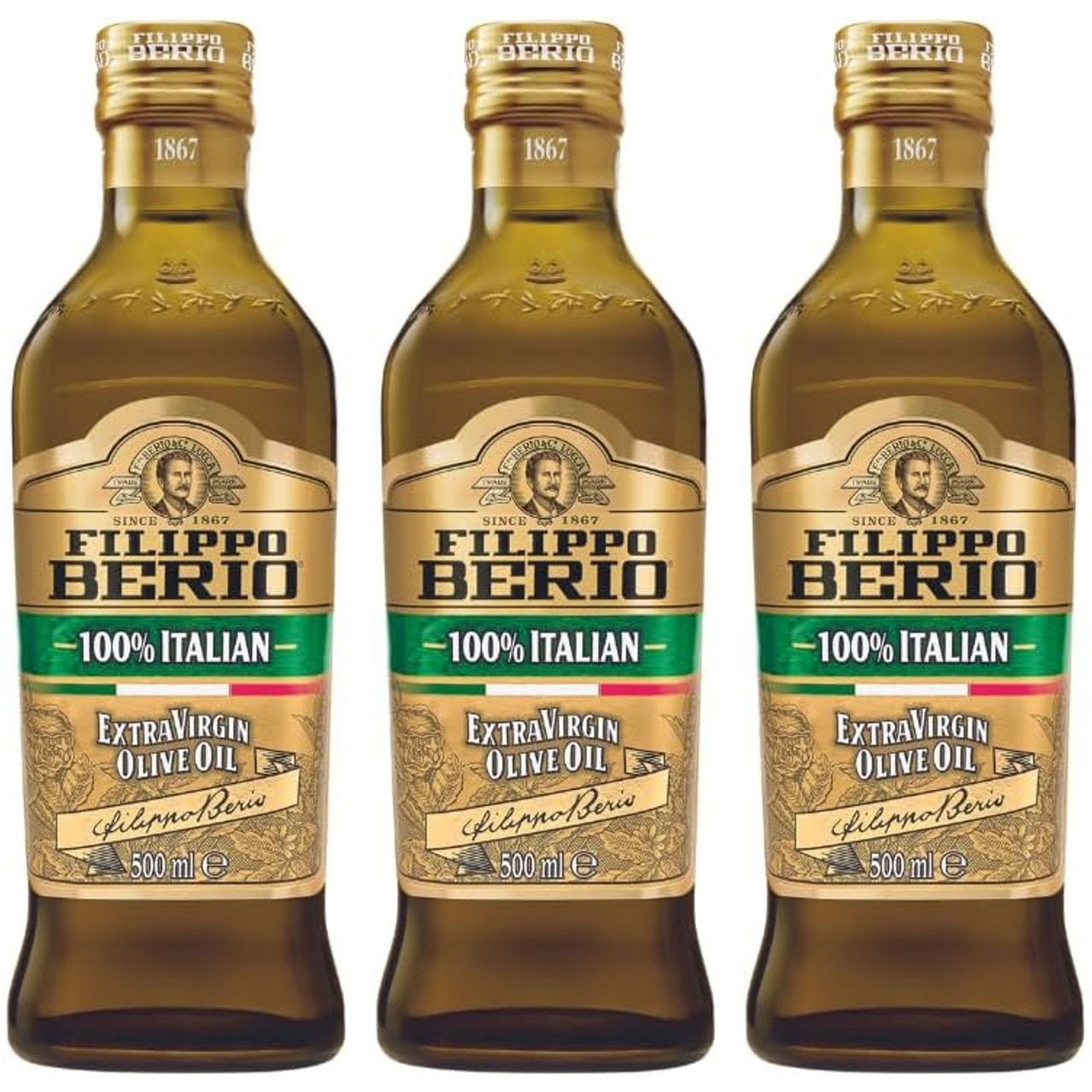 Filippo Berio Extra Virgin 100 % Italian Olive Oil 500ml Glass Bottle BBE 10/25